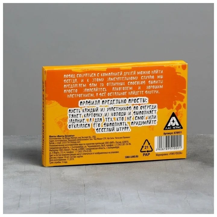 Купить игра для компании "фанты буханты" 20 карт от 100 руб. с доставкой до пункта выдачи в Симе. Интернет магазин ДекаМаркет. Оплата при получении.